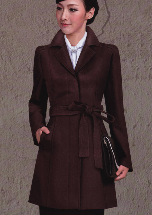 女式大衣約于19世紀末出現,是在女式羊毛長外衣的基礎上發展而成,衣身較長,大翻領,收腰式,大多以羊毛、羊絨作面料首選。女式大衣一般隨流行趨勢而不斷變換式樣,無固定格局,如有的采用多塊衣片組合成衣身,有的下擺呈波浪形,有的還配以腰帶等附件。修身大衣具有較好的瘦身效果。中長款大衣,收腰的設計會讓下半身顯得更修長。富有精品感的大衣,既可以穿得運動、休閑,也可搭配正裝出席正式場合;如果搭短裙、短褲也一樣非常時尚摩登。