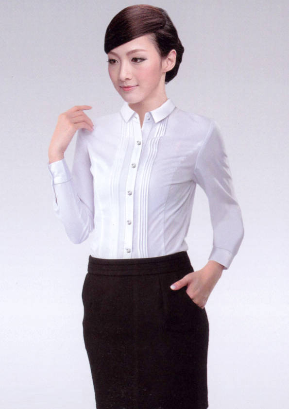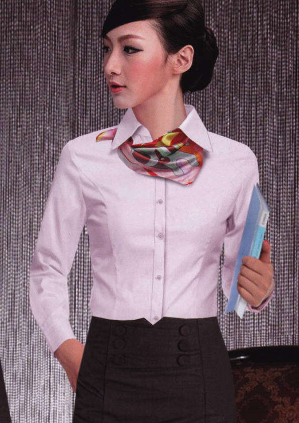 女襯衫是每一位女性必備的服裝,也是款式變化最多、穿用時間最長、最能展現女性風采的服裝。襯衫的顏色可以是多種多樣的,只要與套裝相匹配就可以了。白色、黃白色和米色與大多數套裝都能搭配。絲綢是最好的襯衫面料,但是干洗起來可能會貴一些。另一種選擇就是純棉,但要保證漿過并熨燙平整。在正式場合,穿著要忌短、忌露、忌透。